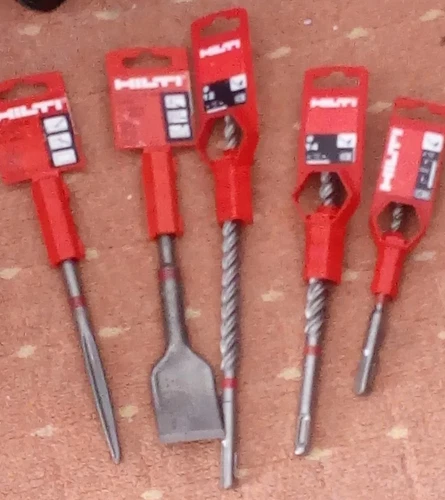 HILTI drill bits x 3 + HILTI chisel bits x 2 & HILTI fan merchandise