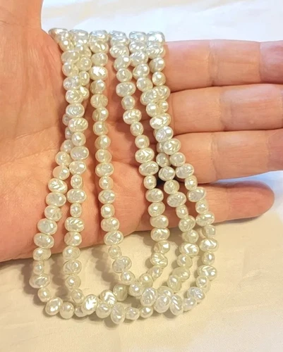 Multi-Strand Faux Baroque Pearl Necklace Light Blue, 3 Strands, Beaded wh02-19