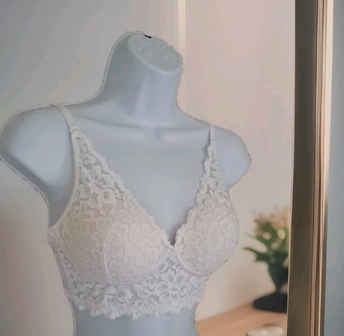 Maidenform Bra 34C White Floral Lace Padded Adjustable Straps Boning Clasp Back