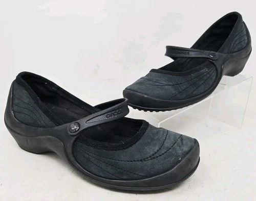 Crocs Womens Wrapped Mary Jane Shoes Black Suede Slip On Flats Slip On Sz 9