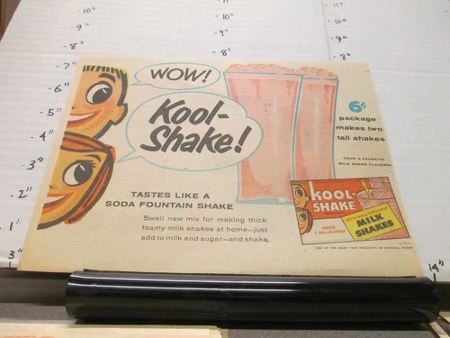 newspaper ad 1956 KOOL SHAKE drink mix pack milk shake soda fountain STRAWBERRY
