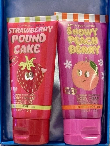 NEW Bath & Body Works Strawberry Pound Cake+Snowy Peach Berry Travel Body Cream