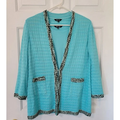 Misook Knit Cardigan Tank Set Womens Small Metallic Trim Textured Coastal Chic