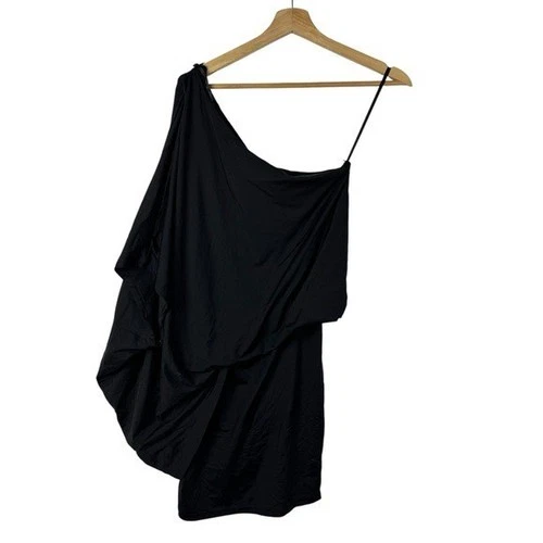 Boutique Main Strip Black One Shoulder Drape Mini Dress L
