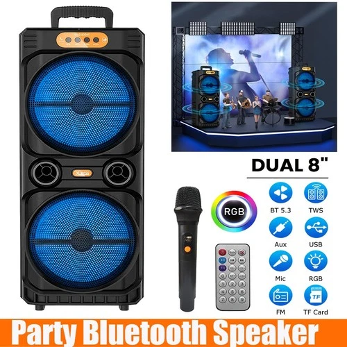 Portable 8" Bluetooth PA Speaker System w/ Mic Heavy Bass Subwoofer Party Audio