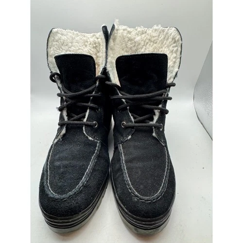 Khombu Snuggler Boots Black Suede Fur Lined Lace Up Women Size 7