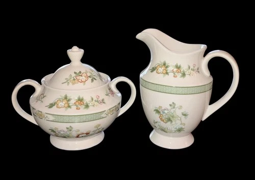 Vintage Royal Doulton Tonkin Creamer & Sugar Bowl w/Lid Set TC 1107 Excellent