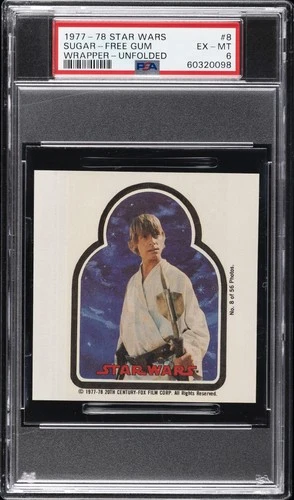 1977 STAR WARS SUGAR-FREE GUM WRAPPER UNFOLDED #8 SUGAR-FREE GUM PSA 6