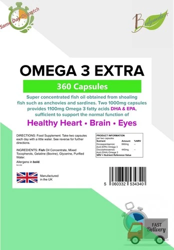 Omega 3 Extra Fish Oil 1000mg, (360 Capsules) Healthy Brain & Memory LINDENS UK