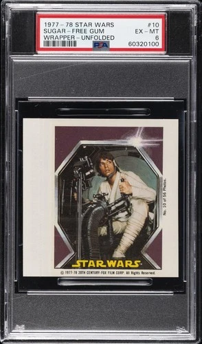 1977 STAR WARS SUGAR-FREE GUM WRAPPER UNFOLDED #10 SUGAR-FREE GUM PSA 6