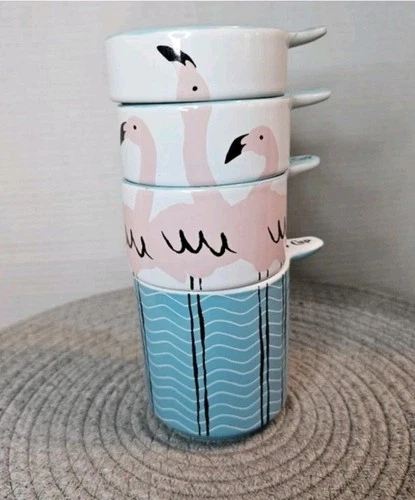 Kitsch'n Glam Flamingo Measuring Cup Set Of 4 Ceramic Porcelain