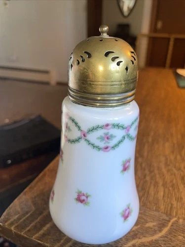 Hand Painted Pink Roses Pattern Sugar Muffineer-sifter Shaker Brass Top