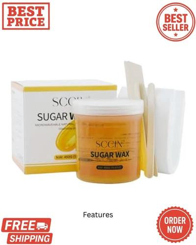 SCCIN Hair Removal Sugar Wax Kit 450g/ Microwavable /20 Wash Strips & 4 Spatulas