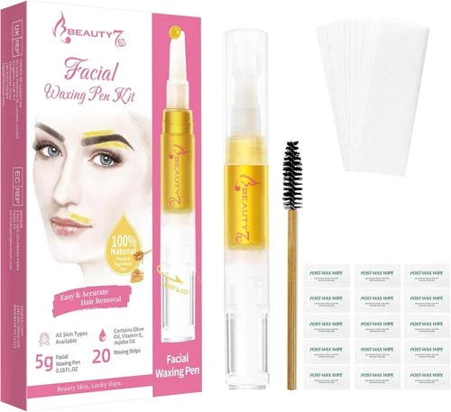 Beauty7 Eyebrow Wax Wand Sugar Wax Pen + 20 Waxing Strips Sugar Wax Formula Eye