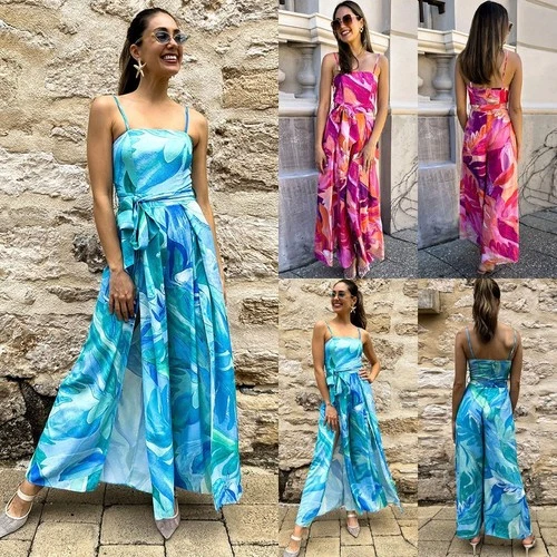 Womens Floral Strappy Loose Split Pants Dress Summer Holiday Jumpsuit Play-suits