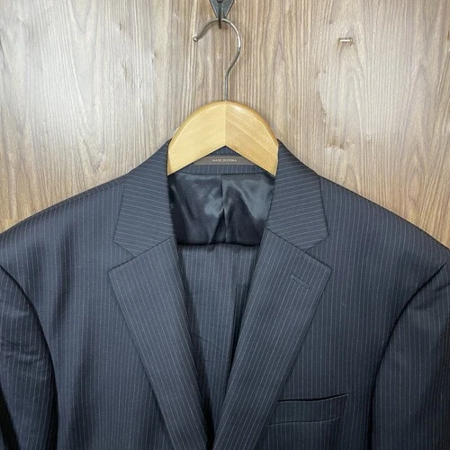 Tasso Elba 2 Piece Suit Mens 42R 36x31 Black Blue Gray Striped Wool Cashmere