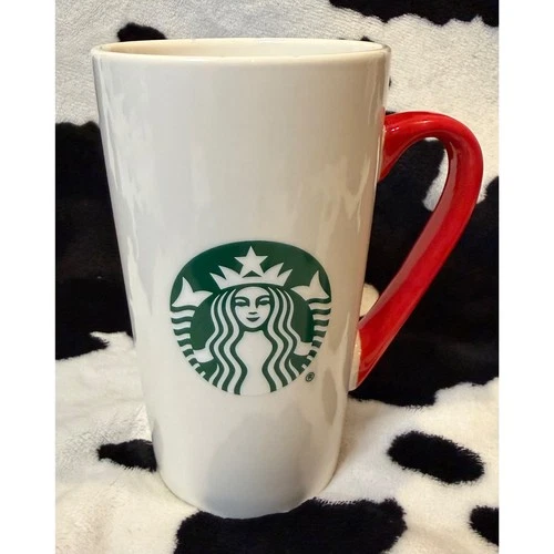 Starbucks 2020 White Ceramic Coffee Mug Green Siren Logo Red Handle 16oz Tall