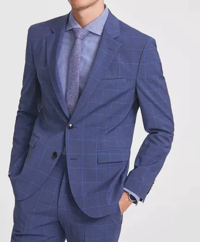 2025 HUGO BOSS The James4/Sharp6 Bright Navy Blue Windowpane Full Suit 44L Wool