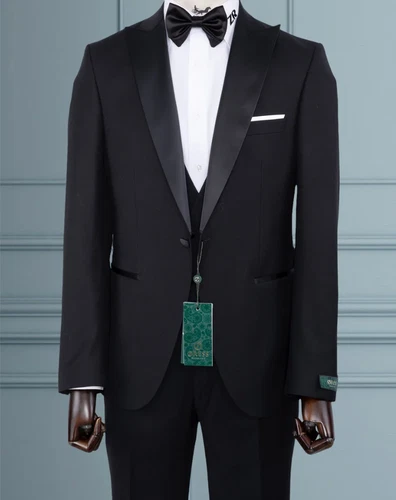 Oress Men's 3 Piece Tuxedo Suit Pants Coat Vest Size 60 NWT Solid Black Suit