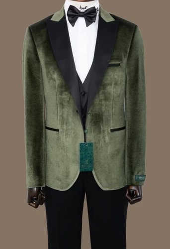 Oress Men's 2 Piece Tuxedo Suit Pants Coat Size 48 NWT Dark Green Velvet