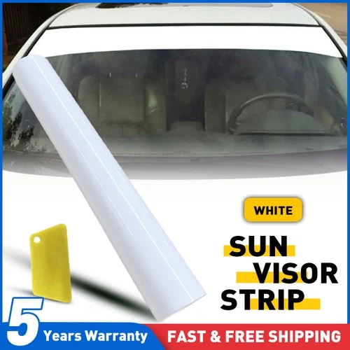 1x Window Sun Visor Strip Tint Film Front Windshield UV Shade DIY Banner White