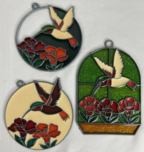 3 Humming Bird Sun Catchers Stained Glass Style Suncatcher Birds Flowers