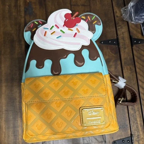 Loungefly Disney Mickey Mouse Ice Cream Sundae Mini Backpack- New w/Tags