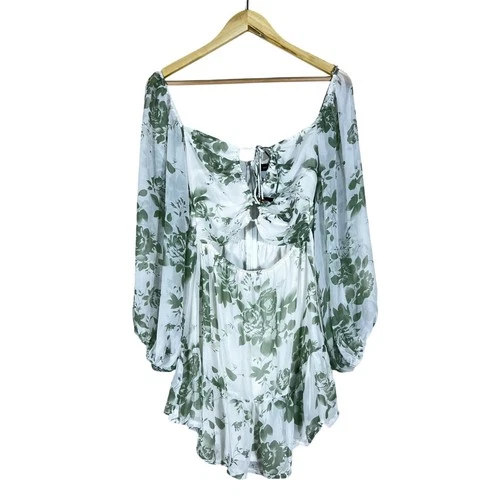 NWT Sundae Muse Floral Cutout Romper Green White Boho Fairycore Size 6