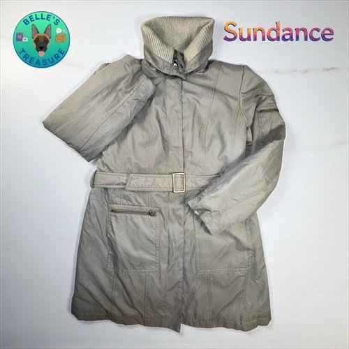 Sundance Jacket Womens Small Full Zip Gray Belted Quilted Lined Turtle Neck Coat