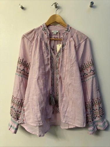 NWT Sundance Living Catalog Totora Top MediumPink Embroidered Cotton Retail $148