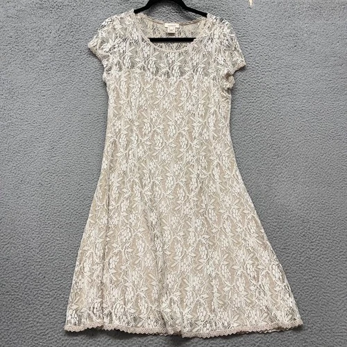 Sundance Dress Womens L Beige Floral Lace Sheer Overlay A Line Western Rodeo