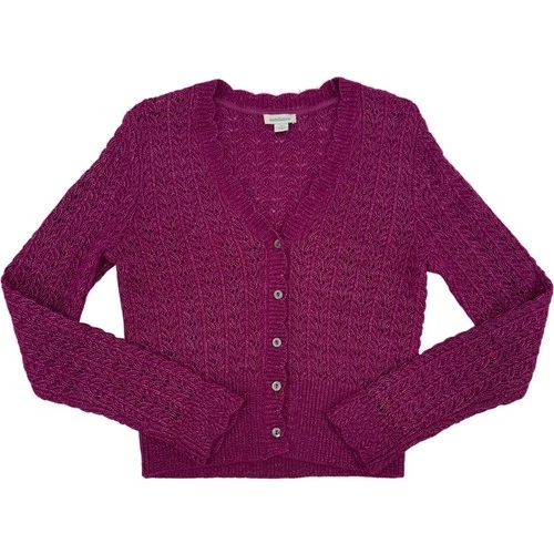 SUNDANCE Small Cropped Cardigan Fuchsia Purple Crochet Boho Knit Sweater
