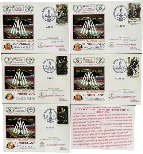 SUNDERLAND V WIGAN ATHLETIC FIRST MEETING FA CUP 5 JAN 2008 FIRST DAY COVERS X 5