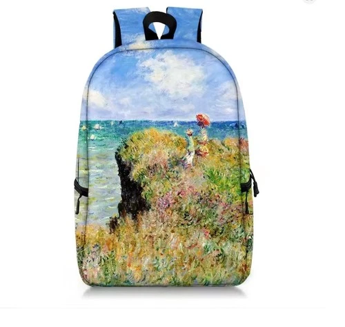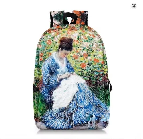 Oil Painting Claude Monet Gustav Klimt Van Gogh Starry Night Sunflower Backpack