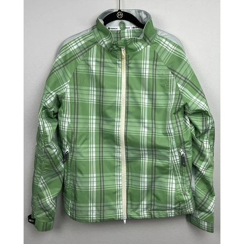 Sunice Women's Typhoon Windbreaker Jacket Green Plaid Zip Up Vented Pockets M