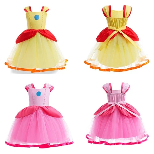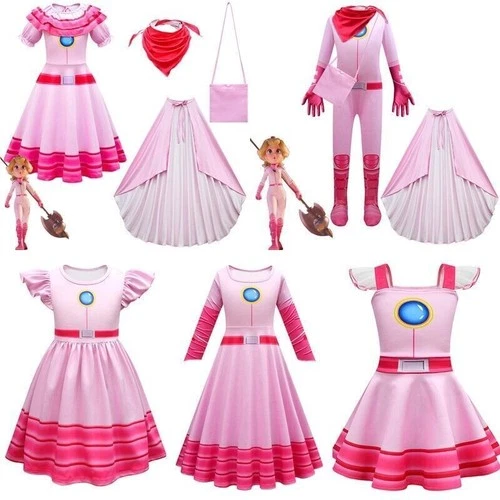 Kids Super Mario Princess Peach Costume Dress Cloak Party Fancy Dress Up Gifts