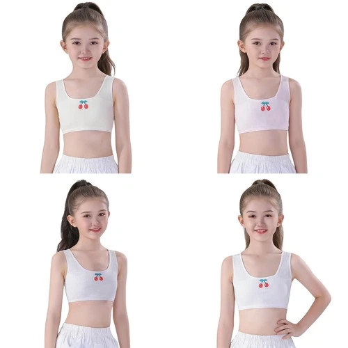 Girls Crop Top Sports Tank Top Double Layer Ribbed Vest Sweet Training Bra Soft