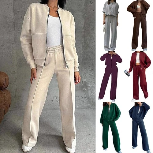 Ladies 2PCs Sets Casual Joggers Tracksuits Thin Zip Up Coat Tops Pants PLUS SIZE