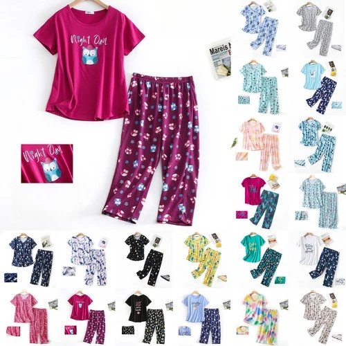 Ladies Pyjamas Set PRINT Pjs Summer Tops + Pants Lounge Wear Nightwear Plus Size