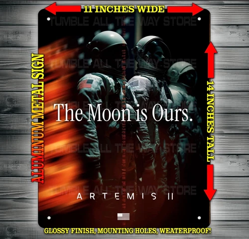 The Moon Is Ours - Artemis 2 - Space Flight Metal Sign Wall Art 14" x 11"