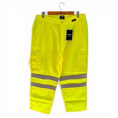 BNWT Yellow Hi-Vis Trousers Mens Workwear Elastic Waist Cargo Size 38R W38 L31