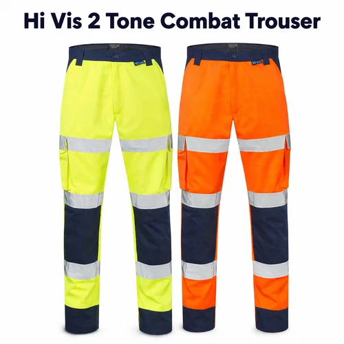 Hi-Vis 2 Tone Combat Trousers Yellow Orange Work Pants Safety Cargo HV
