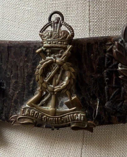 ORIGINAL WW1 CAP BADGE ROYAL ENGINEERS KINGS CROWN BRASS LABOUR OMNIA VINCIT