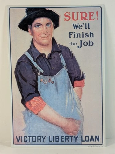 SURE! We'll Finish the Job 1918 Victory Liberty Loan 15-5/8" Repro Tin Sign AAA