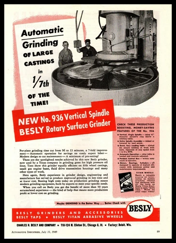 1949 Besly Spindle Rotary Surface Grinder Photo Plant Beloit Wisconsin Print Ad