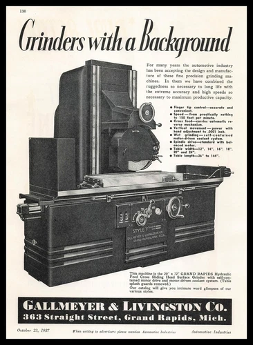 1937 Gallmeyer & Livingston Grand Rapids Michigan Head Surface Grinders Print Ad