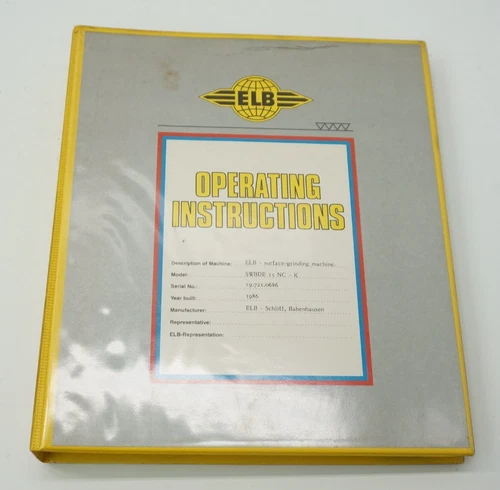 ELB Surface Grinder Model SWBDE 15NC-K, Manual.
