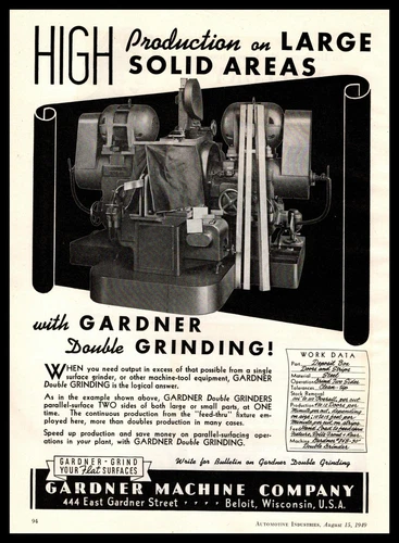 1949 Gardner Machine Company Beloit Wisconsin Double Surface Grinders Print Ad