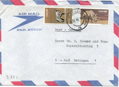 South West Africa SWA DSWA Namibia demand cover with stamp Windhoek B 82z