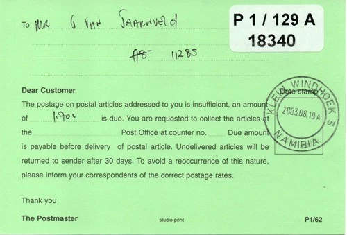 South West Africa SWA DSWA Namibia Replica Card Stamped Klein Windhoek 3
